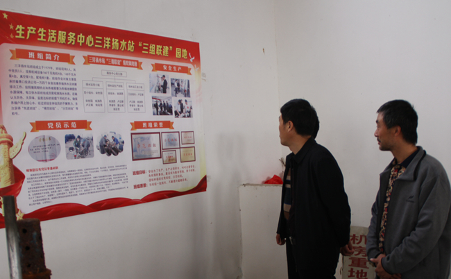 在生產生活服務中心揚水站班組,與會人員實地觀摩了“三組聯建”陣地建設,詳細聽取了黨小組組長關于“三組”在聯建、聯動、聯學等方面的開展情況和取得的成效。