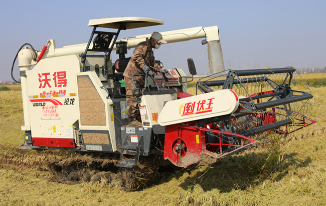10月23日上午,在青口公司大新農場萬畝農田里,大片水稻已經成熟,沉甸甸的稻穗隨風搖曳。新品種試種示范田里收割機往來馳騁,拉開了秋收的序幕。