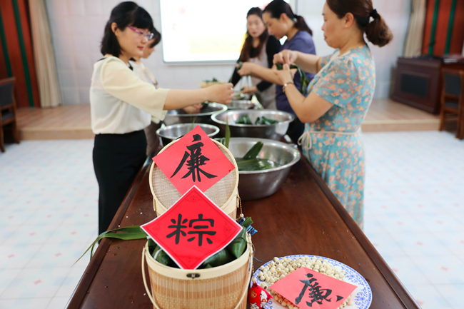 為做好端午節(jié)前廉潔提醒工作,青口公司紀委精心備制了“廉”味套餐,通過“包廉粽 話廉潔”主題活動、廉潔短信、公眾號通報典型案例等教育方式,重申廉潔紀律,為黨員干部打好預防針,提醒他們把好廉潔關(guān),嚴防節(jié)日病。 (瞿 方)