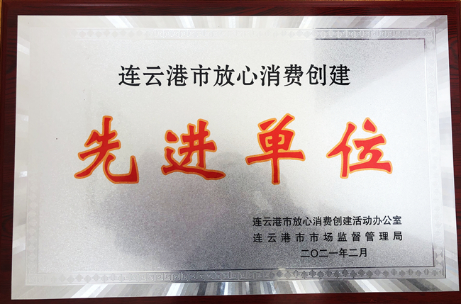 點贊!公司喜獲連云港市放心消費創(chuàng)建先進單位