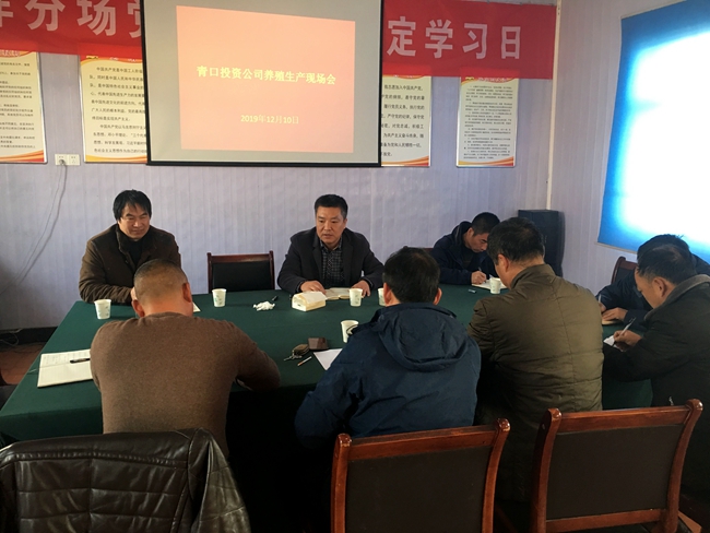 ? ? 12月10日上午,投資公司總經理史祥平在三洋分場主持召開養殖生產現場會,謀劃2020年新一輪養殖池塘發包工作,會上大新農場、黃沙分場、三洋分場負責人對2019年度養殖生產情況進行了匯報,對2020年養殖生產提出了建議,職能部門負責人對最新發包文件精神進行詳細解讀。最后,史總要求各單位部門要緊密配合、準確領會文件要求,及時、穩定、高效做好2020年池塘發包工作。?(鄭?江)