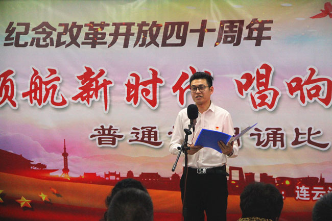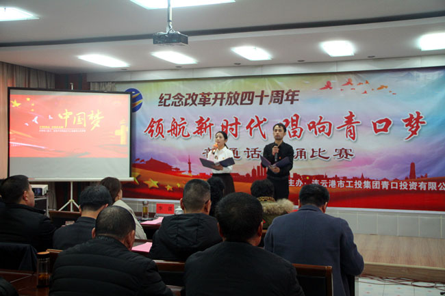 為了紀念改革開放四十周年,引導和激勵廣大職工圍繞 “高質發展、后發先至”主題主線,為建設“強富美高”新青口、開啟青口發展新征程貢獻力量。12月11日下午,青口公司黨委隆重舉行“領航新時代 唱響青口夢”紀念改革開放40周年普通話朗誦比賽。活動邀請到連云港市語委辦副主任、詩朗誦藝術家協會副主席朱衛文,國家級普通話測試員、市朗誦藝術家協會副秘書長李蕾、主任播音員、市朗誦藝術家協會副主席朱平擔任評委。公司領導班子 及 全體管理人員參加活動