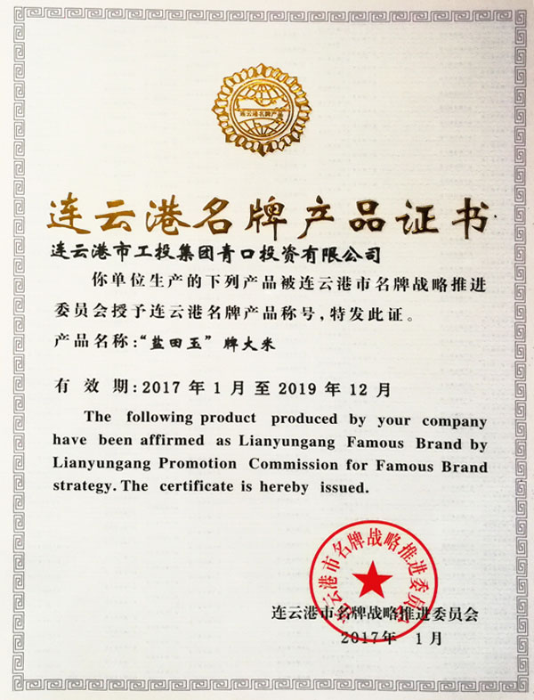 ? ? ? ? 近日,我公司“鹽田玉”品牌大米經(jīng)過(guò)連云港市名牌戰(zhàn)略推進(jìn)委員會(huì)審議,被授予2017-2019年度“連云港名牌”稱號(hào)。這是米業(yè)營(yíng)銷中心對(duì)“鹽田玉”品牌創(chuàng)建的又一重大突破,也為下一步大米營(yíng)銷工作打下堅(jiān)實(shí)的品牌基礎(chǔ)。(王踴)
