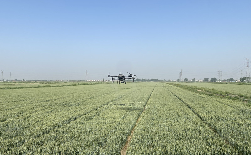 5月13日清晨,大新農場搶抓有利天時,利用無人機開展“耐鹽堿小麥葉面肥施用作業,有效提升農業精細化管理水平、提升農機作業質量和效率。(王璐)