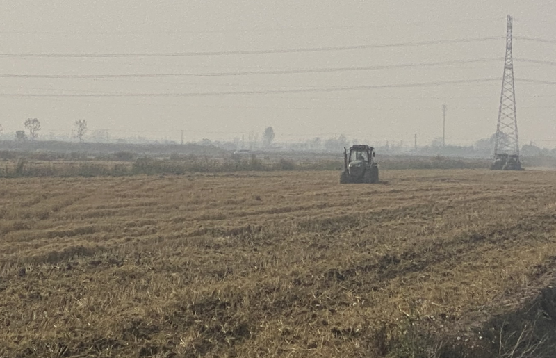 近日,在大新農場的農田里,機聲隆隆,幾臺大型農機拖著旋轉的滾輪正在作業,切碎土塊,并將埋在地表下的水稻根茬切碎,疏松土壤,為接下來的冬小麥播種做準備。(王璐)