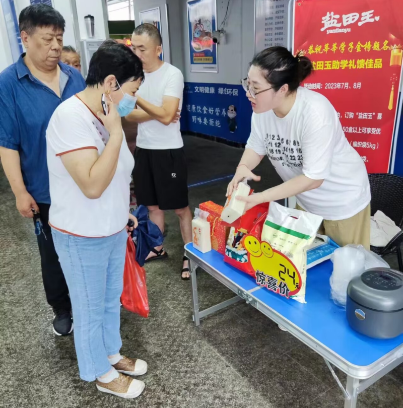 ? ? ? ?近日,米業營銷中心銷售團隊抓住中、高考升學宴契機,在巨龍路農貿市場門口開展現場推介活動,向往來市民細心講解鹽田玉大米,進一步加大宣傳鹽田玉糧油直營店的力度,獲得更多消費者的認可。(田鐘超)