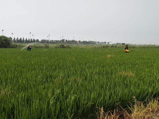時值立秋、暴雨初晴,正是水稻孕穗旺季,大新農場條田工抓住短暫晴天迅速施撒穗肥。由于近期光照少,陰雨較多,為穩定糧食產量,爭創畝產新高,大新農場結合農技意見,選用復合肥+尿素作為拔節孕穗期最后穗肥施撒。(楊杰)