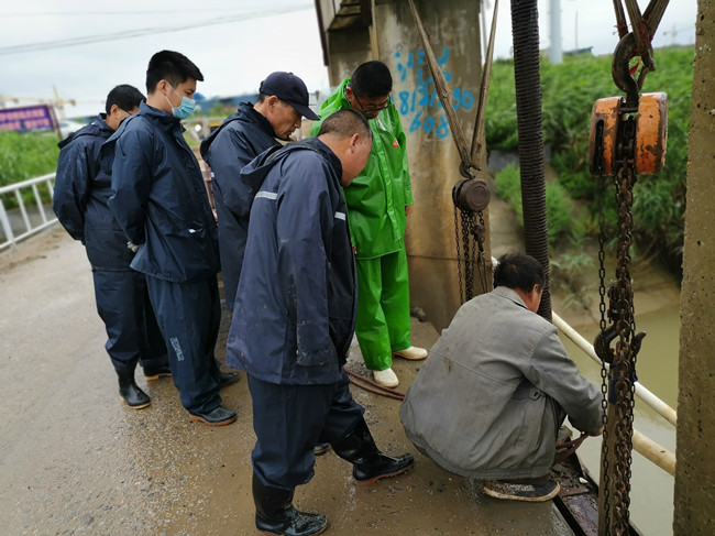近日,三洋分場內附河大新排淡河節制閘西閘突發故障,電動手動起閉系統全部失靈。正值汛期漲潮來臨,為了防止海水倒灌及保障大新農場正常排淡,三洋全體班子頂風冒雨5個小時,采取土方法,用“鐵葫蘆”把閘門關閉,并及時上報公司領導予以維修。(丁海波)