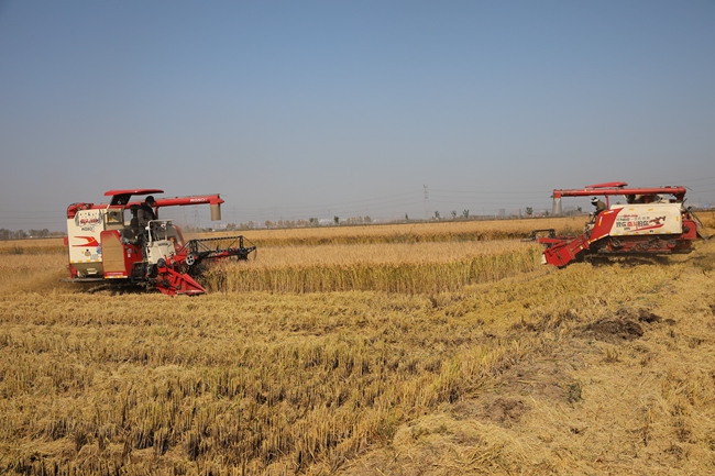 當(dāng)前正值秋收大忙的關(guān)鍵時(shí)期,大新農(nóng)場到處可見機(jī)械來回穿梭地收割、運(yùn)糧、堆糧場景,空氣中彌漫著淡淡的稻香,一派繁忙的豐收景象。為確保秋糧顆粒歸倉,公司秋收工作組在田間和曬場間奔忙著,計(jì)量稱秤、農(nóng)機(jī)管理、巡查值守、后勤保障,統(tǒng)籌安排搶抓晴好天氣抓緊水稻收割,全力打好秋收攻堅(jiān)戰(zhàn)。農(nóng)場從11月4日開始進(jìn)入收割期,十幾臺(tái)收割機(jī)、拖拉機(jī)等農(nóng)機(jī)全部投入生產(chǎn),收割機(jī)每臺(tái)每天基本可以收割30畝左右,農(nóng)場自營的5500余畝水稻預(yù)計(jì)于本周內(nèi)全部收完。今年天氣多變性小,適合水稻生長,預(yù)計(jì)今年水稻的產(chǎn)量將高出去年。(大新農(nóng)場)