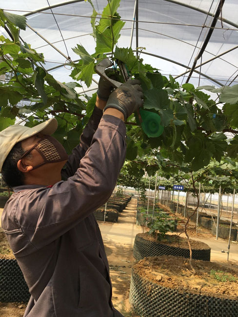 走進炎熱的六月,種養(yǎng)中心大棚內的葡萄也迎來了第三個果期 ——坐果,果實的第一次膨大。中心工作人員及時 摘心、去副梢,適當控制營養(yǎng)生長,以利于集中營養(yǎng)供應果實的生長發(fā)育;及時綁縛新梢,為下一期的轉色、成 熟做好鋪墊。(宋姍姍)