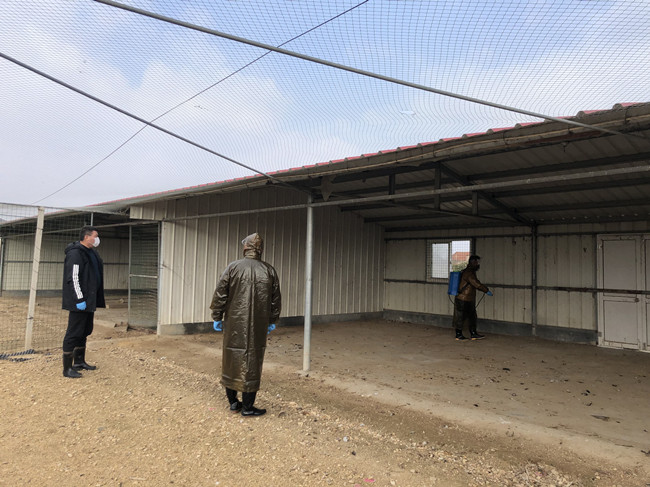 丁海明接到上級命令后,馬上行動起來,嚴格按照疫情防控要求,進行雞舍的消毒工作:環境消毒、衛生清理……生態養雞場內,丁海明戴著口罩,有條不紊地進行著這些繁瑣的工作。