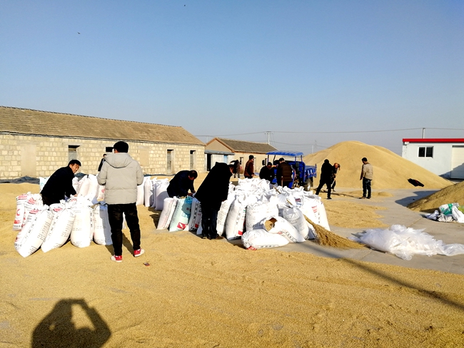 勞動過程中,年輕黨員青春洋溢,老黨員老當益壯,大家互相配合,淌汗了脫掉外套,甩開膀子加油干,推子、鏟子在握,塑料袋在手,有的將稻谷裝袋,有的翻曬受水稻谷,有的將裝袋稻谷運走。大家干的如火如荼,一點沒有停歇的意思,終于在天黑前將稻谷清理完畢。