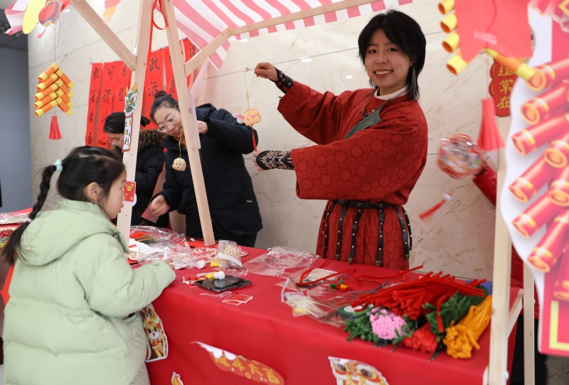 剪窗花、寫對聯,是迎接新年必不可少的傳統習俗,承載了我們對新一年的美好期望。在傳統民俗區,大家沉浸式體驗這些傳統習俗,有的揮毫潑墨,“寫春送福”,有的剪紙寄情,剪出各種各樣象征生肖、團圓、吉祥的窗花,不一會兒,一幅幅滿載新年祝福的春聯,一張張年味濃濃的窗花,就展現在大家面前。