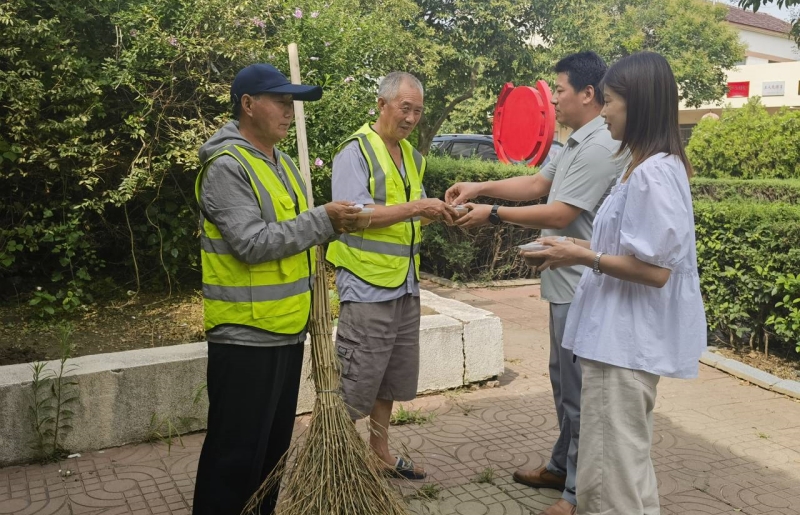 烈日炎炎,有這樣一群人在驕陽下依然堅守在自己的工作崗位上,他們就是黃沙坨美容師——環衛工人。為了給高溫下辛苦工作的環衛工人送去一份清涼,讓他們能夠以良好的狀態投入到保潔工作中,近日,生產生活服務中心分會將熬制好的綠豆湯分裝在碗內,送給正在作業的環衛工人。同時,為他們科普防暑降溫知識,叮囑他們提高安全健康意識,合理調整工作時間。