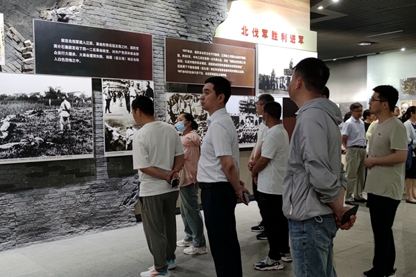 在講解員的引導(dǎo)下,黨員們認(rèn)真參觀了紀(jì)念館中的照片、文物等珍貴史料,認(rèn)真回顧了連云港地區(qū)波瀾壯闊的革命斗爭史。通過圖片展示、文字介紹以及講解員的講解,黨員們對連云港地區(qū)的革命歷史有了更加深入的了解,對革命精神有了更加直觀且深刻的感悟。