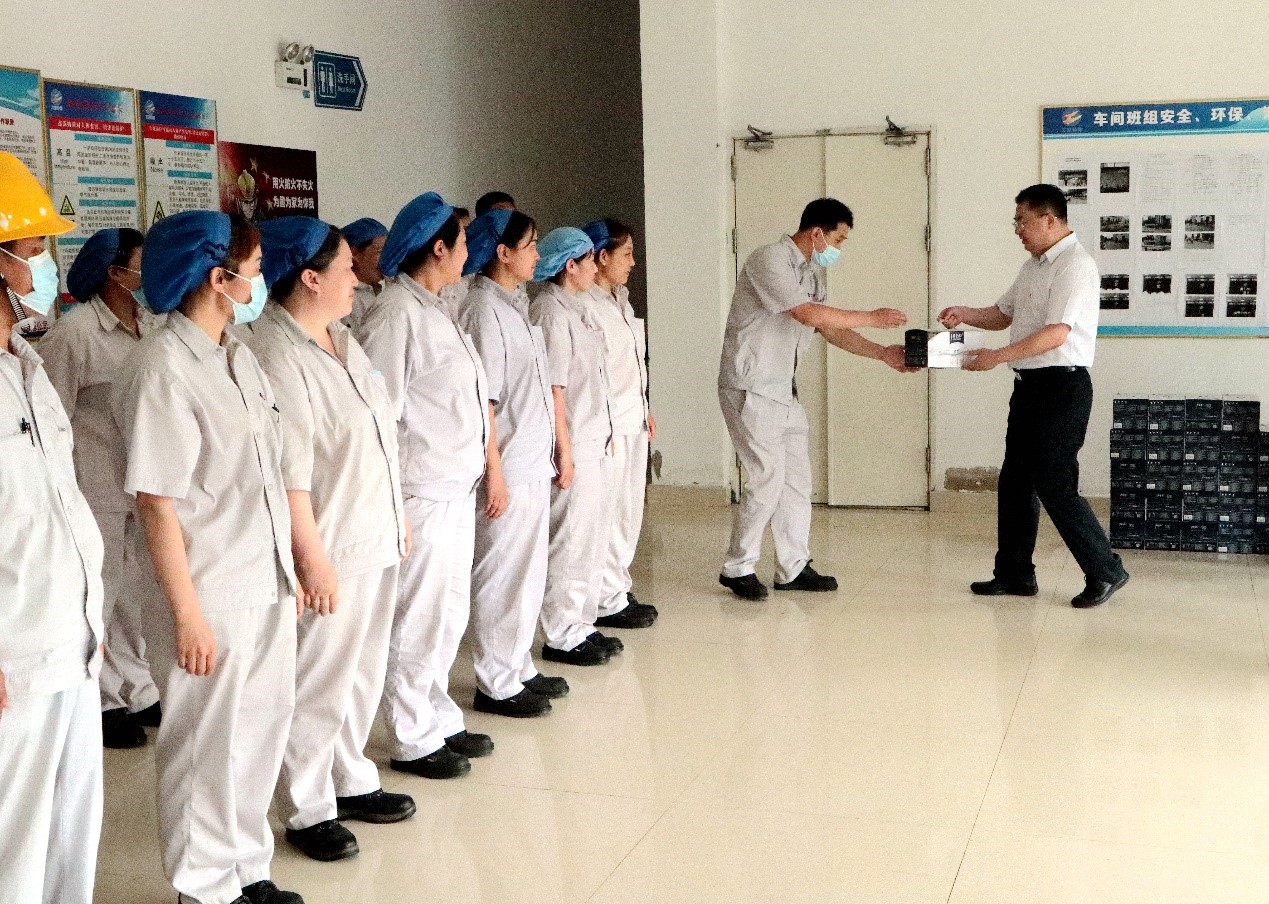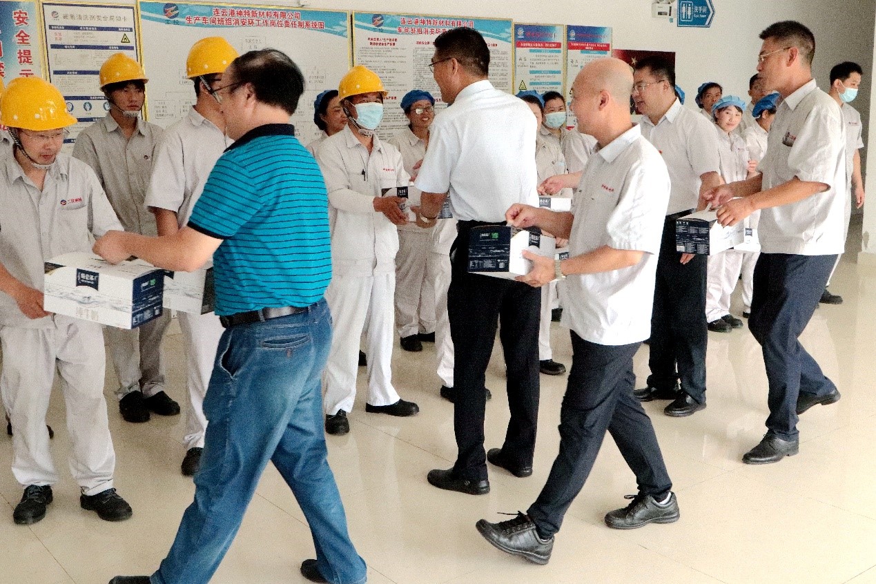 7月28日上午,集團公司黨委副書記戴鴻鳴、工會主席劉承志一行到公司慰問生產(chǎn)一線員工,為生產(chǎn)一線員工送來牛奶、綠豆、白糖、大米等防暑降溫慰問品。公司董事長張斌、總經(jīng)理韓立新等領(lǐng)導陪同。