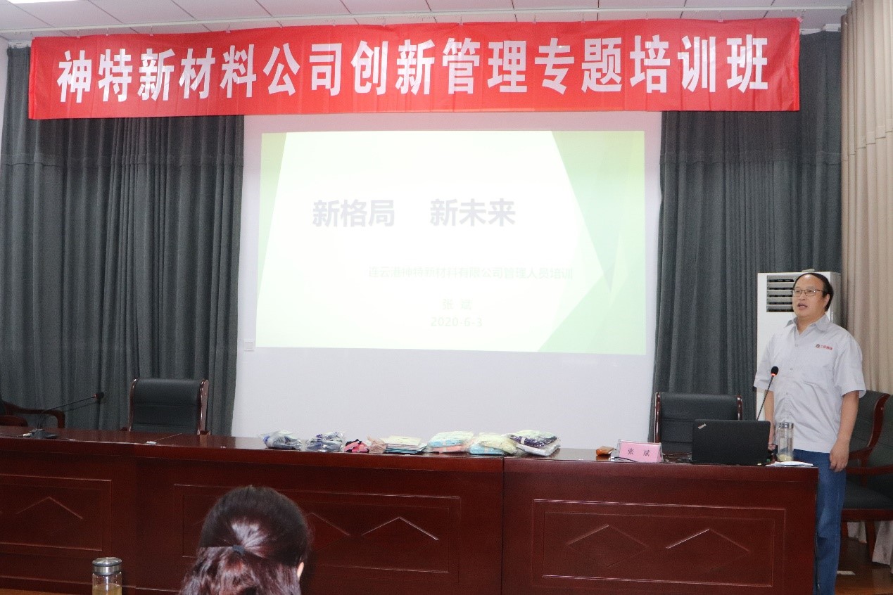 公司董事長張斌作題為《新格局,新未來》創新管理專題輔導,從復雜世界格局下的創新思維、管理的意義、生產與作業管理、質量管理與項目管理等四方面內容授課,運用大量生動有趣的故事、形象具體的事例,加深員工對知識點的理解,提高學習成效,鼓勵員工走出舒適區,敢于冒險和挑戰,激發員工干事創業熱情,開創神特跨越式發展新局面。