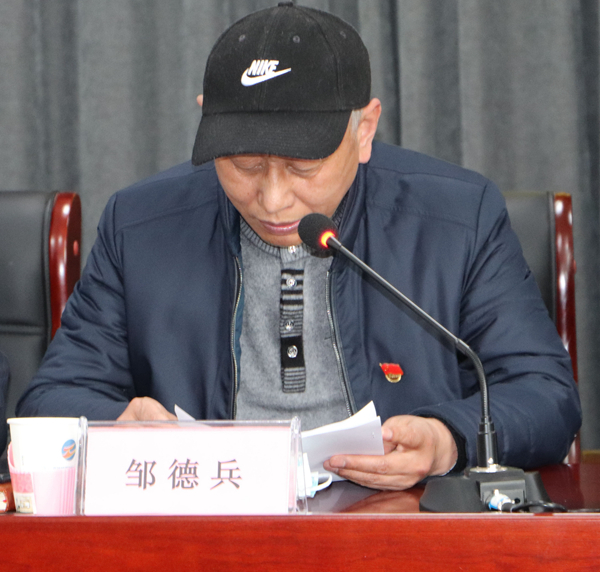 公司黨支部書記鄒德兵作題為《服務增產增收,助推創新創優,為公司高質量發展提供堅強政治保障》的黨建工作報告,全面總結回顧了2019年黨建工作,并指出2020年是“十三五”規劃的收官之年,也是決戰決勝“三年行動計劃”的關鍵之年。公司黨支部要進一步發揮“把方向、管大局、保落實”的領導作用,帶領廣大黨員和管理人員擔當作為,開拓創新,重點做好五方面工作,努力以高質量黨建推動公司高質發展:一是強化思想建設,提升理想信念的引領力;二是強化組織建設,提升服務發展的戰斗力;三是強化作風建設,提升拒腐防變的免疫力;四是強化隊伍建設,提升創新管理的軟實力;五是強化和諧共建,提升促進發展的聚合力。