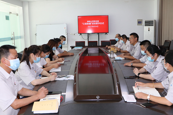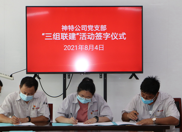8月4日上午,公司舉行“三組聯建”活動簽字儀式,黨小組、生產班組、工會小組的組長參加活動。活動由公司黨支部副書記袁忠主持。