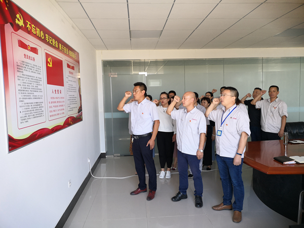 活動中,面對鮮紅的黨旗,公司黨支部副書記袁忠作為領(lǐng)誓人,帶領(lǐng)全體黨員一起高舉右手,再次莊嚴宣誓。鏗鏘恢宏的誓詞,強烈震撼著在場的每一位黨員,一字一句,神圣而豪邁,體現(xiàn)了黨員對中國共產(chǎn)黨的無限忠誠。
