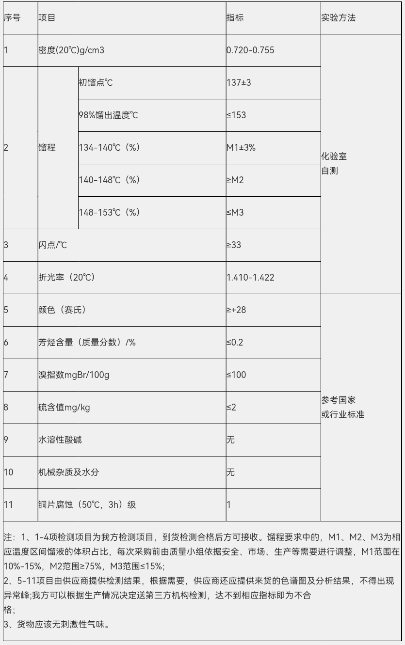 連云港神特新材料有限公司招標文件編號:STZB-202304 碳氫清洗劑(輕質白油)技術指標確認: