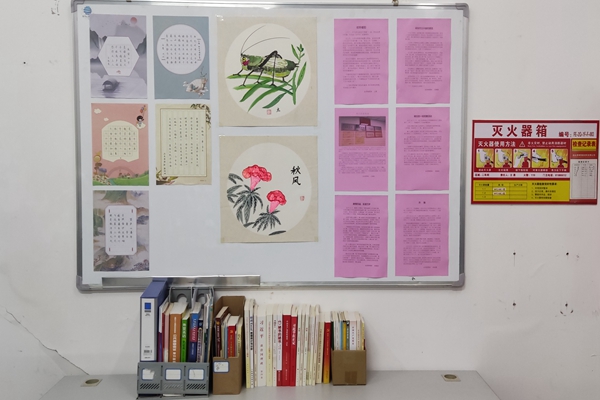 走進我們的物檢室,這是熟悉的不能再熟悉的地方,一進門,一個小小的變化就驚訝到我了,眼前一亮。原來在我的強力機前面的墻上掛著一個白板,白板上貼著我們部門員工的各種作品,分為三塊,左邊是五張?zhí)圃姇ǎ疫吺枪揪W(wǎng)站登出的六篇文章,中間則是我們部門才女張云的兩幅畫,特別是橘紅色那一抹,使得整個版面亮起來了。真不知道我們的才女怎么那么有才的?