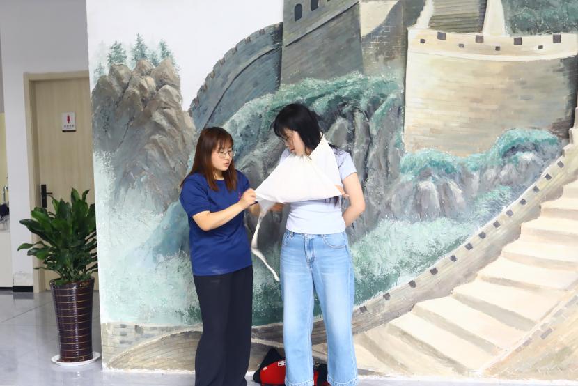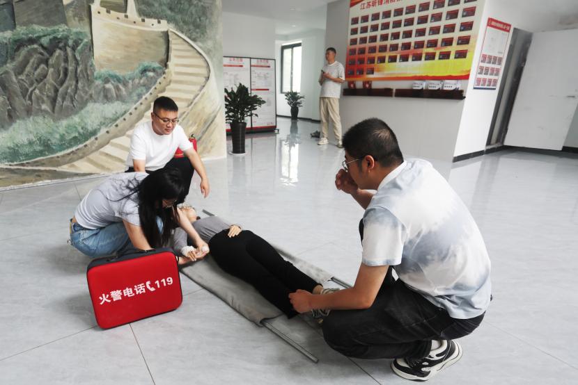培訓中,連云港德安消防職業培訓學校資深教員王彥結合多年的工作經驗和實際案例,細致地向大家開展了消防理論培訓,結合室內外的消防設施的作用,系統講解了整個建筑消防系統的工作流程,介紹了應急疏散逃生的正確方法步驟;現場教學了消防護具穿戴、自救呼吸器使用;演示了簡易擔架制作、簡易包扎;著重示范了心肺復蘇以及海姆立克急救等。通過生動形象地講解,全體員工對消防安全知識有了更全面、更深入地了解。