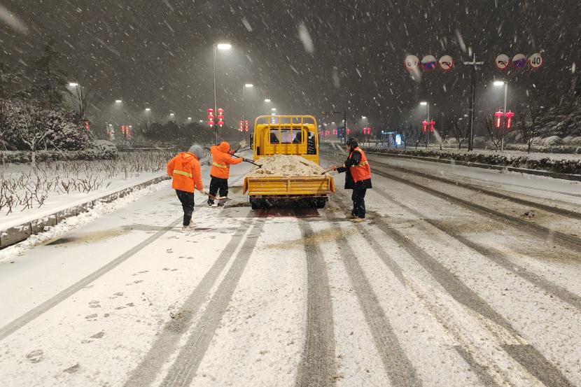 深夜時(shí)分,該公司負(fù)責(zé)人趙陽、副經(jīng)理孫振剛等領(lǐng)導(dǎo)班子成員及管理人員,帶領(lǐng)徐育華、王永等數(shù)名工人,對花果山大道及轄區(qū)易積雪區(qū)域和橋梁陡坡處、事故多發(fā)處開展清雪除冰工作。盡管刮著寒風(fēng),飄著雪花,大風(fēng)肆虐如刀割似的吹拂著臉頰,雪花染白了頭發(fā)、浸濕了衣袖、凍紅了臉龐,可身著橘色工作服的趙陽一行,面對這一難啃的骨頭,卻絲毫沒有懈怠,他們發(fā)揚(yáng)螞蟻啃骨頭的精神,冒著嚴(yán)寒一直與冰雪搏斗。副經(jīng)理朱文江開著工具車慢慢前行,趙陽、孫振剛等人緊跟其后,一锨一锨奮力撒融雪劑,徐育華、王永等人則一點(diǎn)一點(diǎn)鏟除地面積雪,現(xiàn)場人員爭先恐后,配合默契,經(jīng)過一夜的連續(xù)作戰(zhàn),隨著太陽的升起,終于將公路上的“白色巨龍”降伏。在寒晨的冬陽下,他們拖著疲憊的身子離開清雪除冰現(xiàn)場,那身橘色的工作服猶如不滅的火炬,融化了冰雪,溫暖了行人。