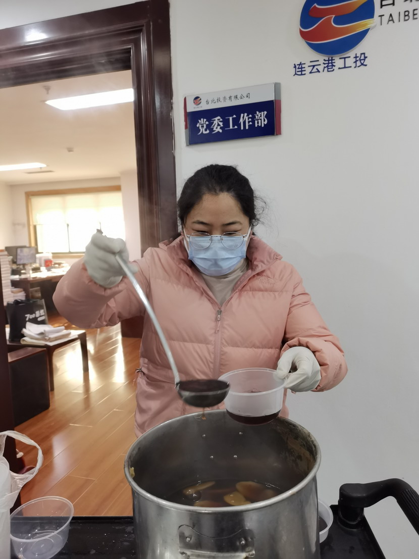 經(jīng)科學(xué)配制,組織專人每天用生姜、紅糖、蔥根、甘草等原料熬制姜茶提供給員工飲用。職工們喝著香噴噴的姜茶,個(gè)個(gè)臉上流露出幸福的笑容,邊喝邊說:這個(gè)湯劑既暖身又暖心!