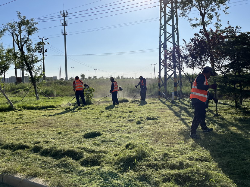 斗酷暑 陽光很烈,他們很美。滾滾熱浪,高溫驗。值爆表,室外溫度38℃,地表溫度飆升到50℃,城市像一個巨大的蒸籠”,空調(diào)房里的人們望門止步。但是,有一群與太陽肩并肩不服的鐵子,他們用黝黑皮膚擦亮奮斗的底色。你可以在小區(qū)里看到他們頭頂驕陽找路徑、穿網(wǎng)線、做網(wǎng)絡(luò);可以在東方大道上看到他們冒著紫外線的灼烤,忙著栽種草苗、除草澆水;可以在大浦路上看到他們腳踩滾燙瀝青,忙著轉(zhuǎn)移交通桿;可以在花果山大道上看到他們汗流浹背,背著割灌機(jī)忙著打草。一件件浸透汗?jié)n的工裝,一句句樸實無華的話語,一份份汗水淋漓的擔(dān)當(dāng)……翔立每位員工都在發(fā)揚“特別能吃苦、特別能戰(zhàn)斗、特別能奉獻(xiàn)”的鐵軍精神,攥緊拳頭,埋頭苦干。