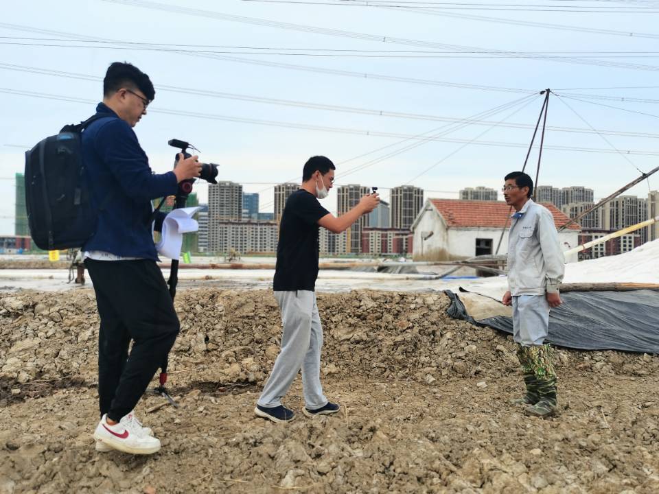 在灘頭一線,采訪組一路走,一路問,與陪同人員了解鹽場歷史,和作業(yè)人員溝通制鹽工藝,時不時的拿起單反相機(jī),咔咔咔的按著快門,以不同視角的圖片、視頻等宣傳媒介記錄下鹽場最生動、最有特色的畫面。