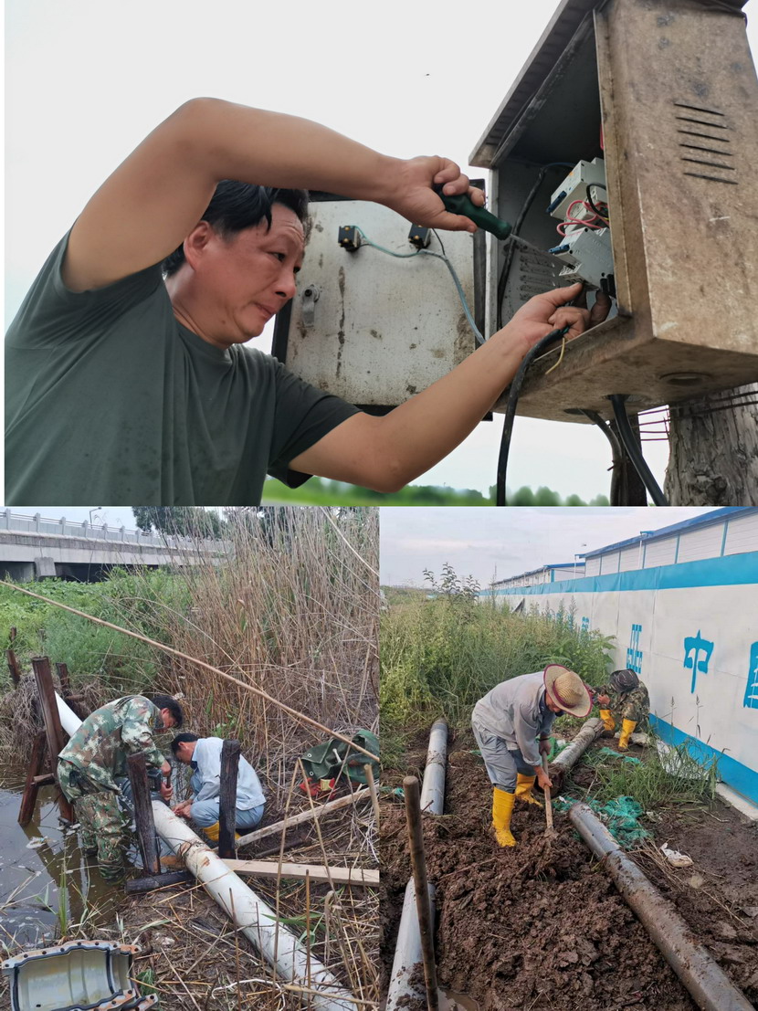 先鋒泵站,程輝師傅撩起工作服擦了擦臉上的汗水,繼續將潛水泵安置到已廢棄的灘地里,把灘地里的雨水抽干,將廢棄的灘地利用起來晾曬低濃度的鈣液,解決銷售旺季成品鈣液供不應求難題。