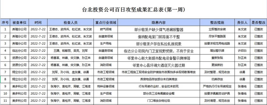 安全生產百日攻堅成果(第一周)