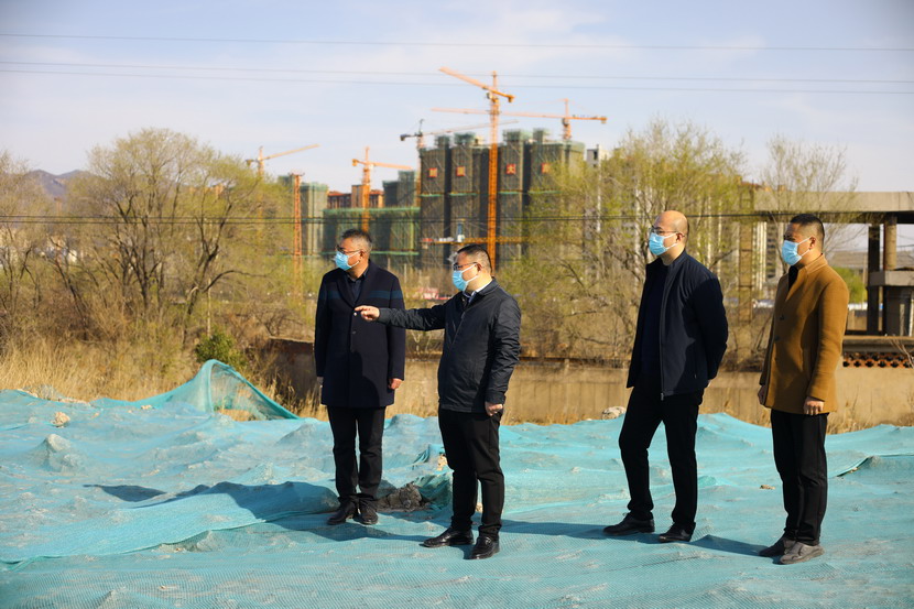 楊龍董事長一行首先檢查貨場道路和地面硬化情況,然后對未用地塊裸土苫蓋情況進行現場督察。
