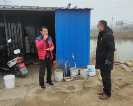 共產(chǎn)黨員趙紹慶和朱文金在疫情期間,除了參觀社區(qū)志愿活動,進(jìn)行卡口值勤和衛(wèi)生消毒外,還每天往返于公司各閑置土地之間。他們頂著寒風(fēng),穿梭于池塘地頭間,向即將清退的養(yǎng)殖戶宣傳公司和清退政策,幫助人手不夠的養(yǎng)殖戶對養(yǎng)殖塘附近進(jìn)行全面環(huán)境消殺,幫助即將退出離開的養(yǎng)殖戶清理各類物資,幫助他們把需要帶走的物品整理歸類,以便盡早搬走,騰出池塘方便開發(fā)區(qū)征收。