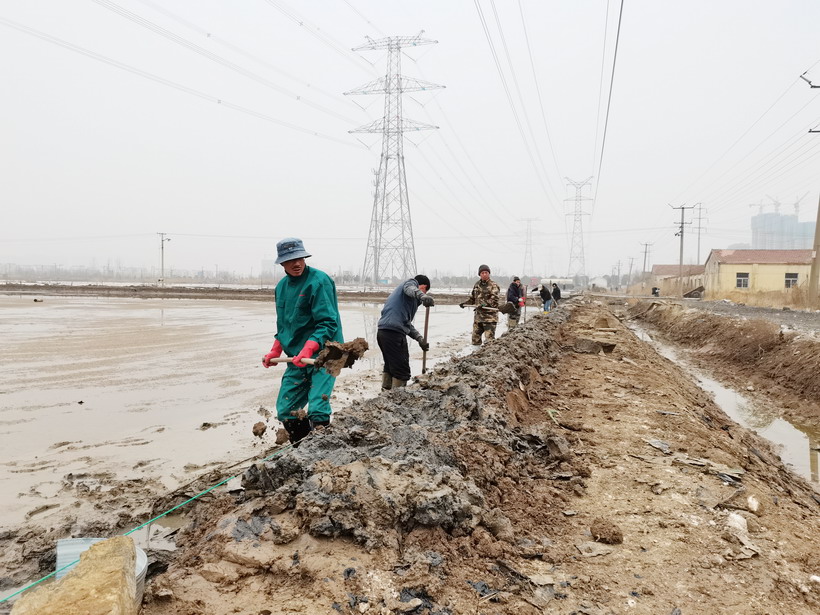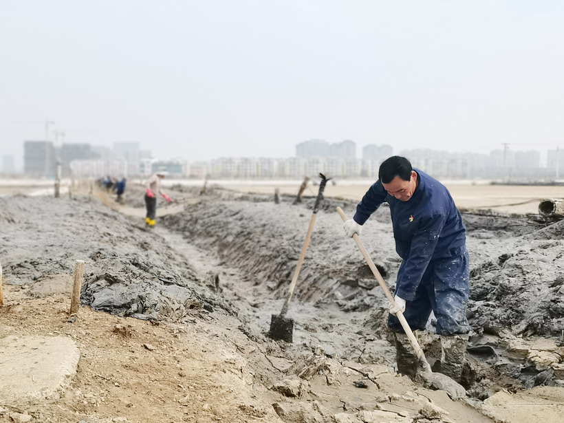 近日,迎著初春的風走進昌圩班組,在印有醒目“開局就是決戰,起步就是沖刺”的橫幅下,退休黨員朱春年正帶領職工撩溝做堰,更換結晶池塑料布等。兩鬢斑白的朱組長士氣毫不減當年,一邊忙一邊說:“昌圩結晶池因灘工撂荒較嚴重,冬準工程量大,為了能完成公司冬準計劃,我們把海濱、程圩職工都抽調過來了,過年都在干活,目前這邊1000畝結晶池已經完成,春節期間灌了一部分,現在天時好,我們得抓緊時間,早灌池,早落鹽!你們自己轉轉、看看吧,我實在太忙了····