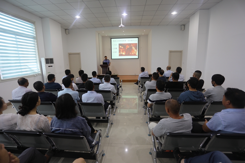 董教員結合近年來出現的各種火災事故典型案例,對火災發生的常見原因、報警時應注意的問題、各類型火場中特色的逃生技巧、以及如何組織人員疏散,火場自救方法及滅火器的使用、車輛電器火災的特色處理等知識進行了深入淺出的講解,通俗易懂地給大家上了一堂消防安全課。