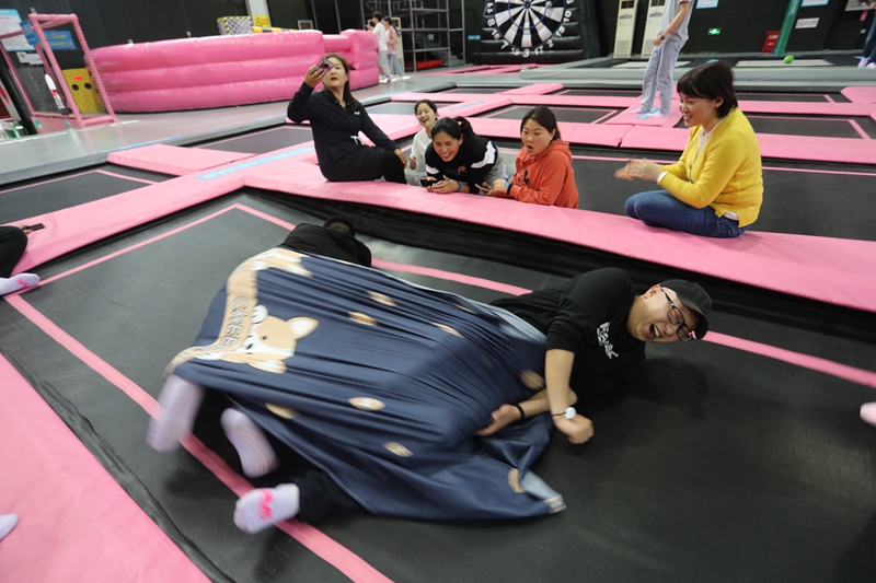 團建活動中,兩個隊伍的成員通過頭腦風暴為自己的隊伍分別取名為“黛玉隊”和“寶釵隊”,分別由看起來比較柔軟實際也很柔軟的王茜和看起來很有力量,實際也很有力量的宋文靜帶領。大家喊出來鼓舞人心的口號,簡單的取名、口號環節起到了破冰的作用,瞬間拉近了隊員之間的距離。拓展訓練中,青年們共同配合,迎難而上,大膽挑戰自我,“重走長征路”、“黨史60秒”、“四平八穩”等緊張激烈的對決中,每個團隊齊心協力攻克了一個個最初認為不可能完成的項目,共同分享了成功的喜悅和挑戰的激情,充分地體會到了團隊信任、合作共贏、換位思考、永不言敗的重要意義,圓滿完成了拓展訓練任務。