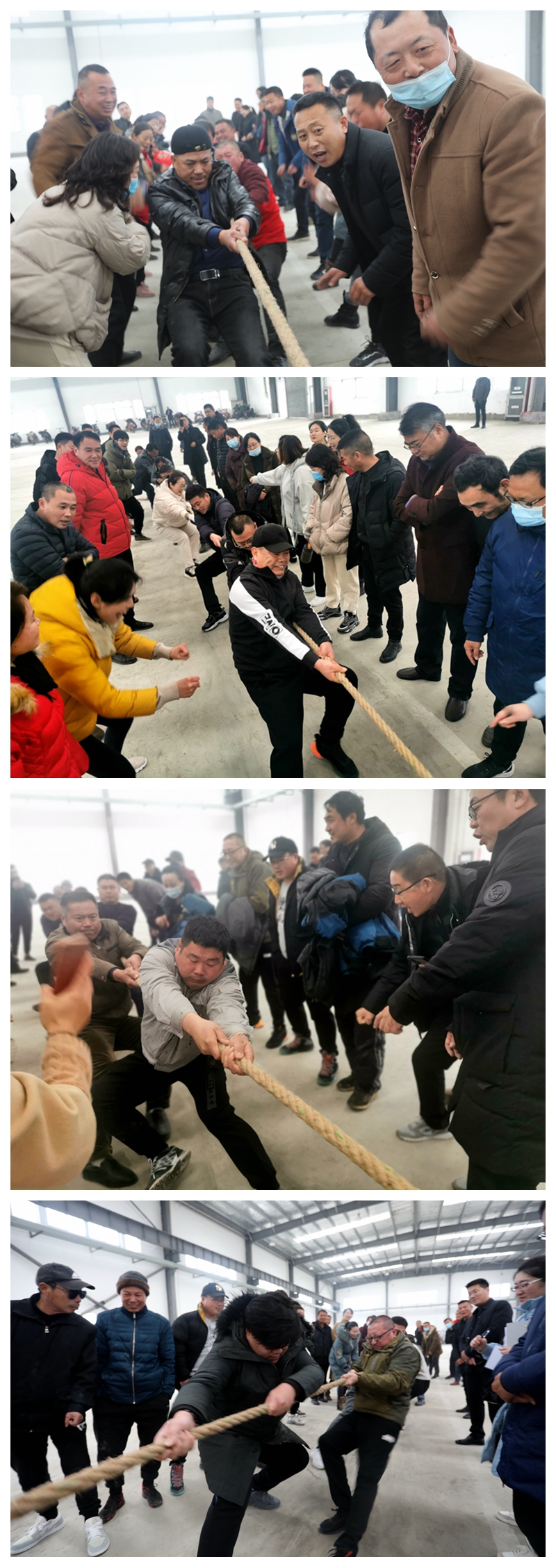 陽光熹微,冬日似金。為喜迎2021年新年的到來,大力弘揚(yáng)團(tuán)結(jié)拼搏,昂揚(yáng)向上、奮發(fā)有為的精神風(fēng)貌,營(yíng)造生動(dòng)活潑、寬松和諧、積極健康的良好氛圍,12月28日下午,投資公司在海州灣公司9號(hào)廠房舉辦“慶豐收、展風(fēng)采、譜新篇”迎元旦職工趣味運(yùn)動(dòng)會(huì)。本次趣味運(yùn)動(dòng)會(huì)分為拔河、同心擊鼓、企鵝漫步、快樂點(diǎn)球等四個(gè)項(xiàng)目,分為兩天舉行,本日舉行拔河、同心擊鼓兩項(xiàng)比賽。
