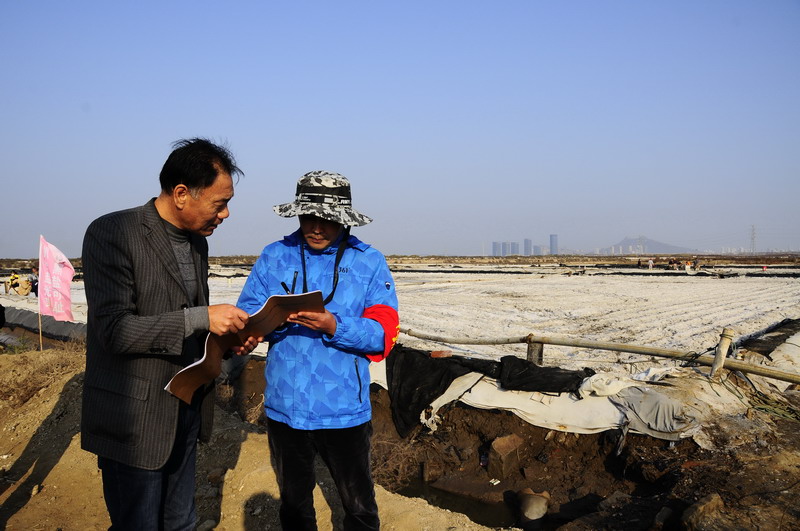 ▲楊善革對(duì)扒鹽作業(yè)現(xiàn)場(chǎng)安全生產(chǎn)提出要求