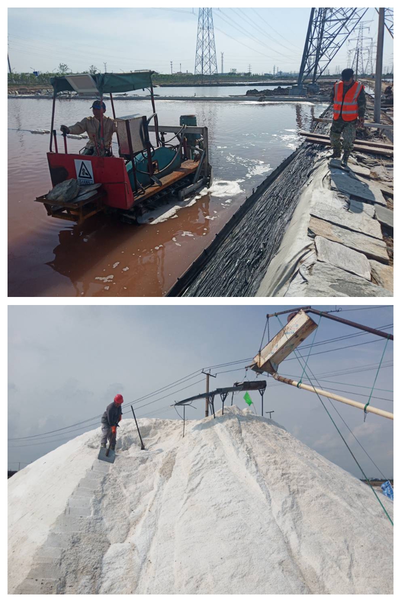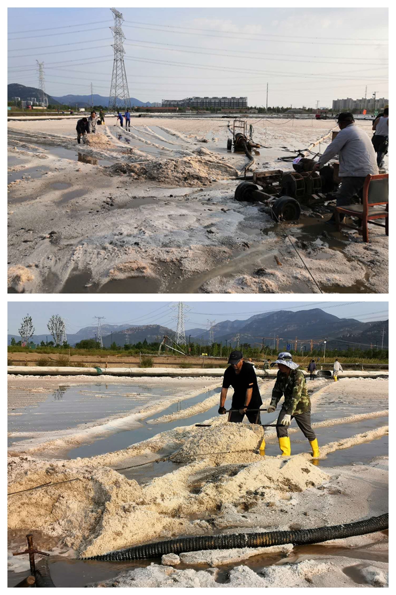 海州灣公司開定制的新式扒鹽機械正式投入使用,秋季生產如火如荼地進行中。
