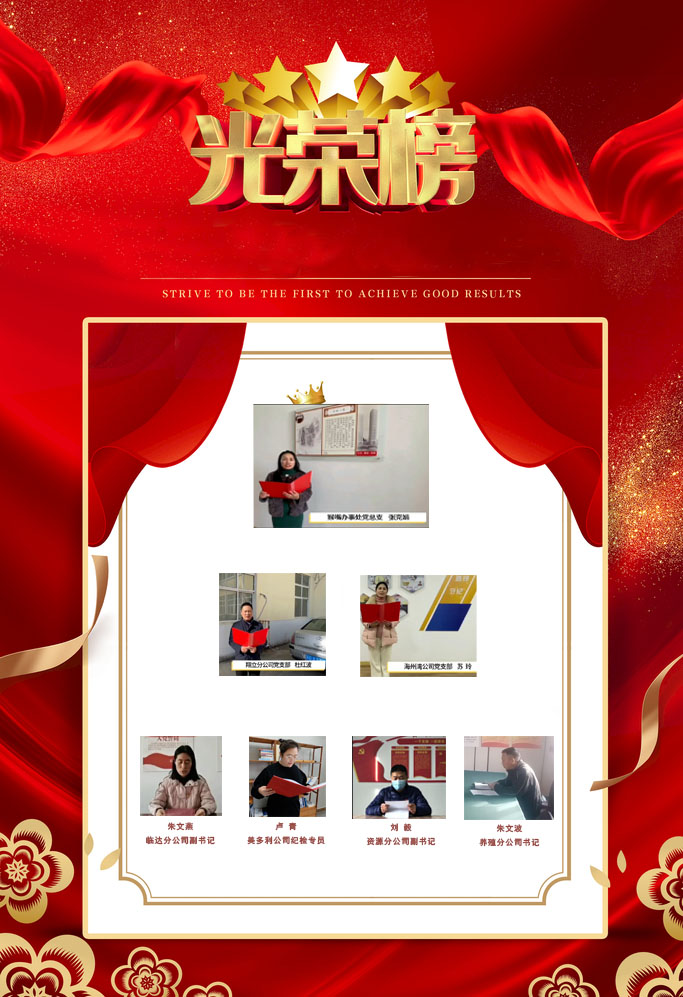 ? ? 為深入學(xué)習(xí)“黨的二十大”報告精神,公司黨委組織開展黨務(wù)工作者讀黨的二十大原文視頻拍攝活動,經(jīng)公司黨委評比,現(xiàn)將得獎人員名單公布如下: