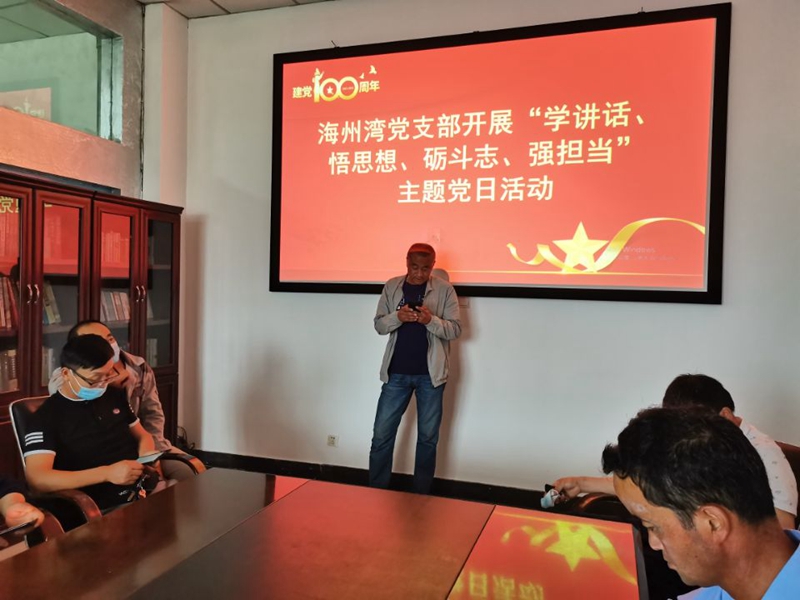 為深入學(xué)習(xí)貫徹習(xí)近平總書記“七一”重要講話精神,進(jìn)一步堅定理想信念,引導(dǎo)廣大黨員不忘初心、爭創(chuàng)一流,7月27日上午,海州灣黨支部開展“學(xué)講話、悟思想、礪斗志、強(qiáng)擔(dān)當(dāng)”主題黨日活動。