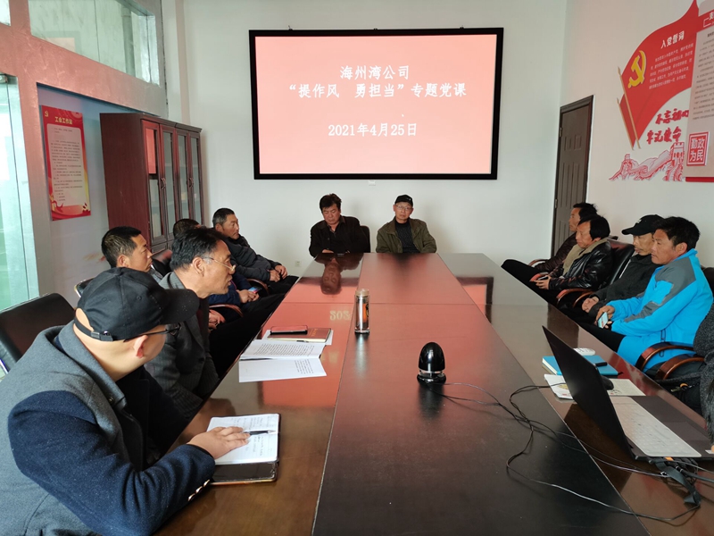 為貫徹落實投資公司一季度經營分析會、“作風提升年”暨“兩個責任”推進會會議精神,4月25日,海州灣黨支部組織黨員。開展了一次“提作風 勇擔當”專題黨課。