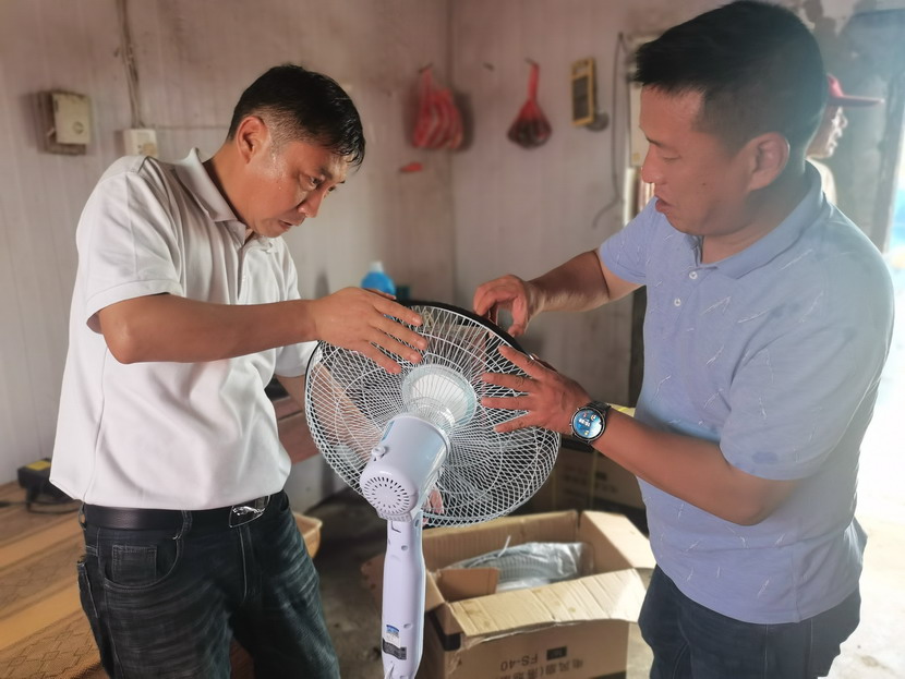 15臺風扇陸續送至“先鋒、昌圩、大浦”三個礦鹽班組,公司領導一邊親手為職工進行安裝,一邊與他們親切交談,詳細了解職工需求,充分肯定他們不畏艱辛、吃苦耐勞的奉獻精神,叮囑他們做好防暑措施,保障身心健康,同時保障生產作業安全平穩。
