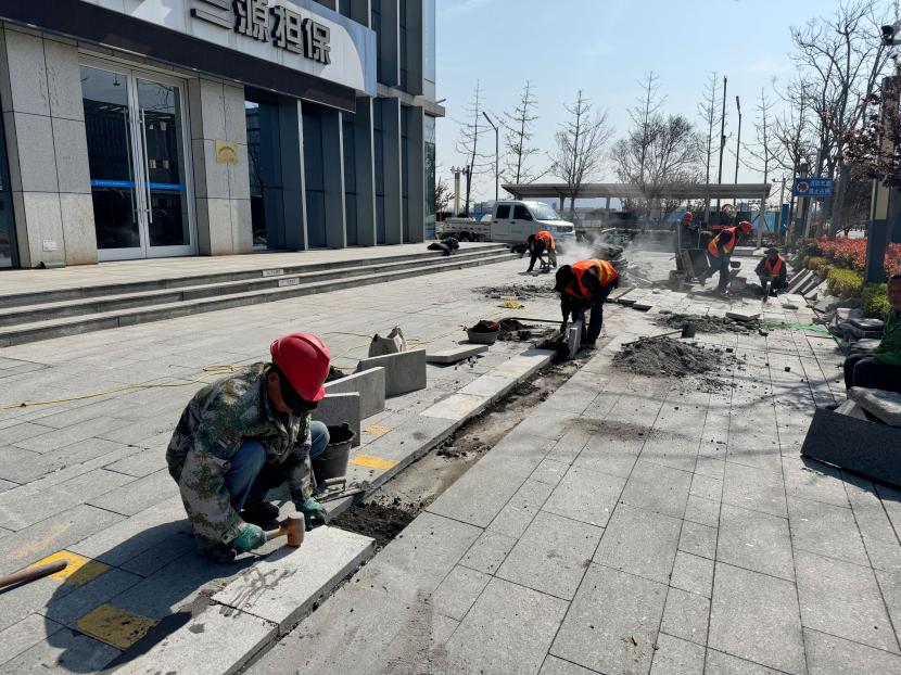節(jié)日期間,盛達市政分公司在做好對轄區(qū)車流較多路段的巡查與維護工作同時,還做好突發(fā)情況應急處理工作,在面對創(chuàng)智大廈大理石面板遭到突發(fā)損壞時,該公司有條不絮,第一時間調(diào)配人員,展開緊急修復工作,及時為創(chuàng)智大廈工作人員和群眾提供安全道路環(huán)境。同時,該公司針對環(huán)保督察組進駐開發(fā)區(qū)事項,全力做好在建工程安全文明施工,雨污水班組加班加點對重點區(qū)域進行巡查,在東方大道與躍湖路交匯處的污水連接井項目上,施工人員有序進行鋼筋捆扎與模板支撐作業(yè),展現(xiàn)出他們對工作任務的專注與效率;興業(yè)路和友誼路的雨水管網(wǎng)也在進行一系列改建與加固,包括澆筑混凝土蓋板,確保城市基礎(chǔ)設(shè)施的完善和持續(xù)運作,各施工現(xiàn)場均做到了圍擋、指示牌、路錐等擺放規(guī)范,工作服、安全帽等穿戴整齊,安全措施到位。