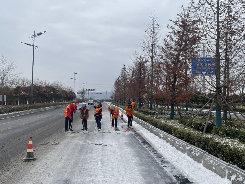 天氣雖冷,但絲毫沒有影響大家的干勁,經過1個多小時的連續奮戰,完成了融雪劑拋撒和清理工作,確保了道路安全暢通。