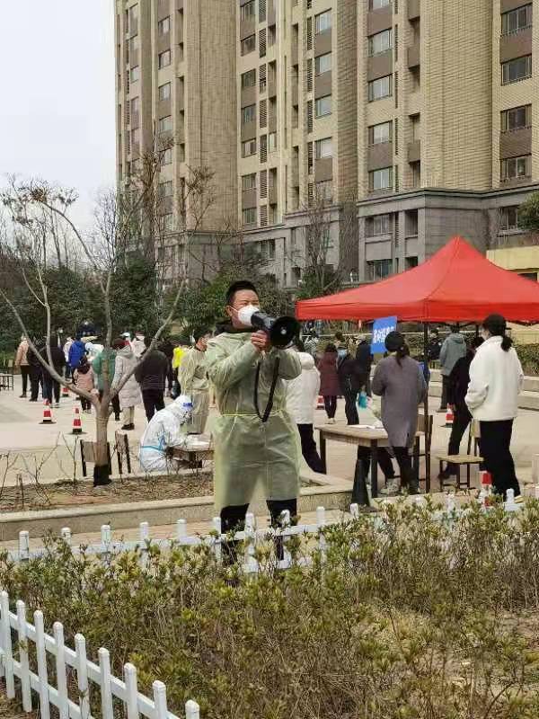 疫情爆發(fā)初始,許邱白就加入社區(qū)疫情防控志愿者的隊伍,服從志愿服務(wù)工作統(tǒng)一調(diào)度,協(xié)助醫(yī)護人員做好公共場所秩序維持,積極引導(dǎo)群眾有序進行核酸檢測。在現(xiàn)場,他一邊維持秩序,一邊提醒居民們:“請大家佩戴好口罩、排好隊,保持一米間隔,準備好身份證,出示蘇康碼”。他不怕風(fēng)險,用實際行動踐行了“奉獻、友愛、互助、進步”的志愿者精神。
