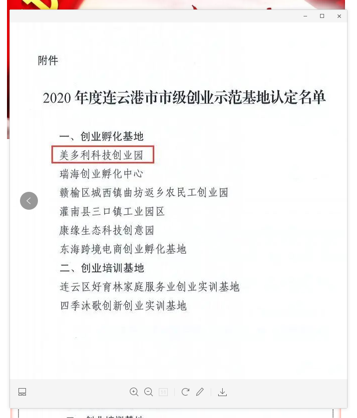 近日,連云港市人力資源和社會保障局公布了2020年度市級創業示范基地名單,美多利科技創業園成功入選