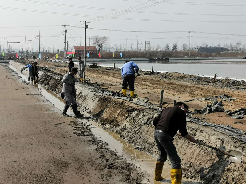 疫情攔不住奮進(jìn)者們,大浦全體員工投入了一場(chǎng)又一次的緊張繁忙的原鹽生產(chǎn)中。他們克服疫情影響充分利用初春的間隙時(shí)間,對(duì)塑布拉放、修補(bǔ)、灘地整修、鹵水收儲(chǔ)進(jìn)行及時(shí)有效的修復(fù)與儲(chǔ)存,為確保完成原鹽生產(chǎn)計(jì)劃奠定堅(jiān)實(shí)的基礎(chǔ)。